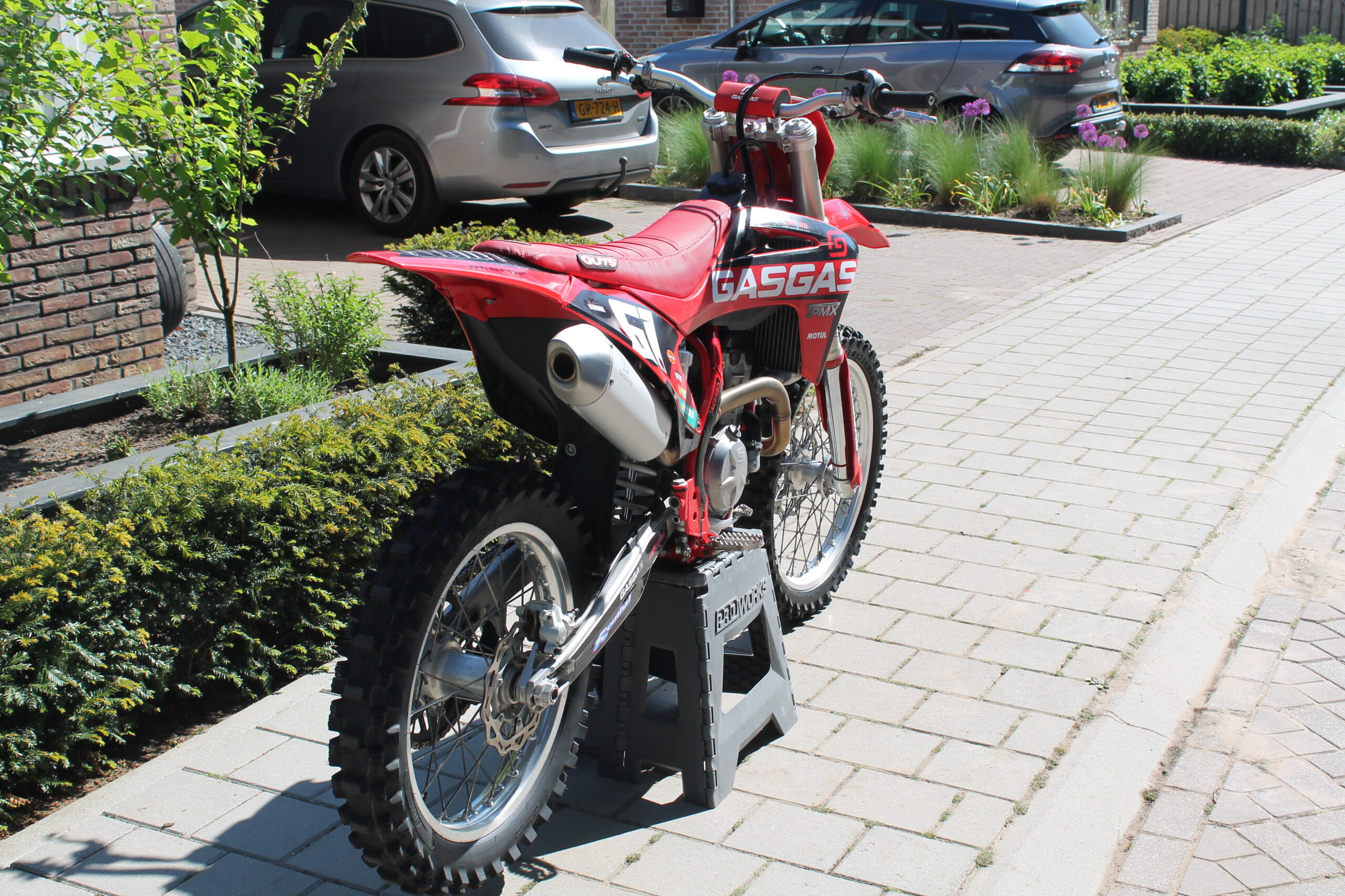 Crossmotor te koop: Nette Gasgas MC250F uit 2022, met titanium voetsteunen en guts zadelovertrek. Vering door ORS op 75KG – 80KG afgesteld.